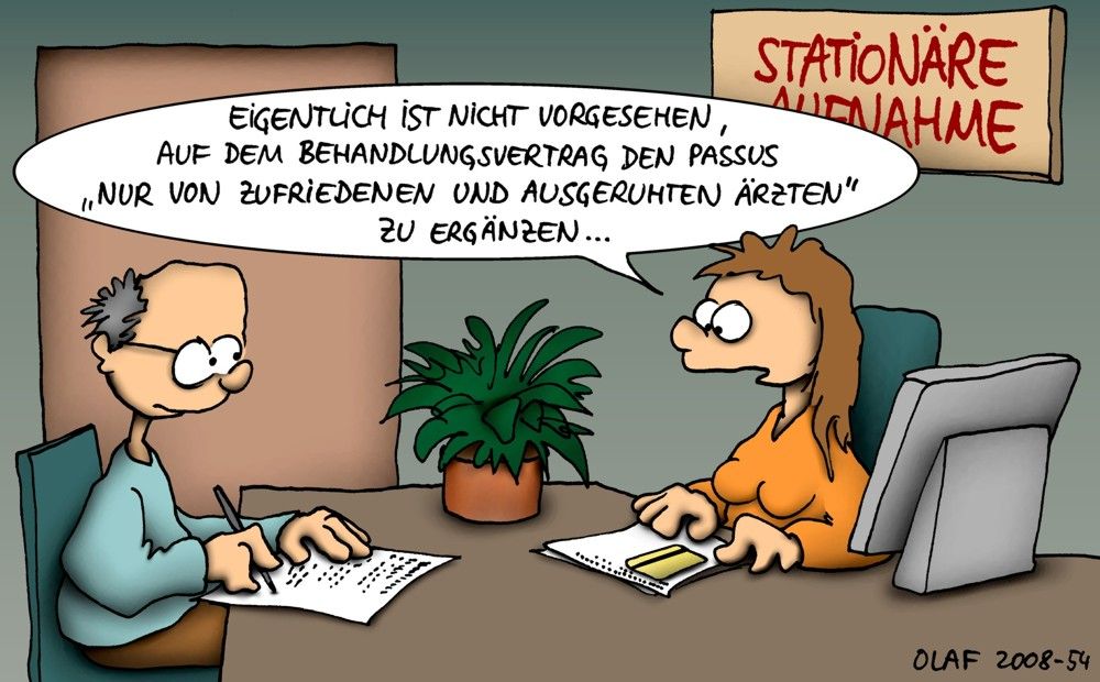Diese Galerie ist schon fast ein Archiv zur deutschen Gesundheitspolitik der letzten bald 25 Jahre. Seit 1998 ist OLAF auch Cartoonist für die Ärztegewerkschaft marburger bund. Viele Bilder versteht man natürlich nur im entsprechenden Kontext. Falls Sie auf der Suche nach einem passenden Cartoon für Ihre Zwecke sind, dann melden Sie sich gerne bei OLAF. Die Cartoons und die Sprechblaseninhalte lassen sich immer auch anpassen...